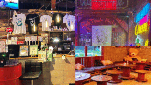 カラオケチャレンジやダーツができたりと、遊び心あふれるおしゃれな空間が特徴です。